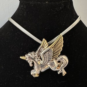 Pegasus Unicorn Pendant Brooch Gold Silver Tone Necklace Vintage Mythological