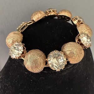 Vintage Kramer Rhinestone Bracelet Chunky Disc Clear Headlight Gold Tone
