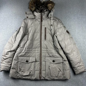 Eddie Bauer Down Parka Womens XL Gray Faux Fur Hood Puffer Jacket Warm Quilted