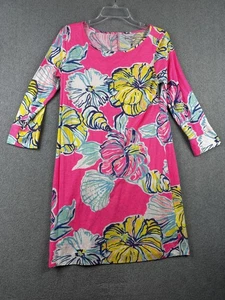 Lilly Pulitzer Dress Womens Medium Pink Floral Pima Cotton Shift 3/4 Sleeve