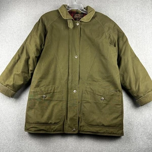 Eddie Bauer Coat Mens Large Olive Goose Down Canvas Barn Plaid Line Corduroy USA