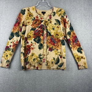 Talbots Cardigan Sweater Womens Small Beige Floral 100% Cashmere Button Front