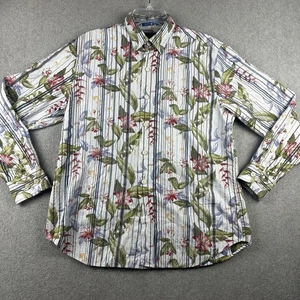 Tommy Bahama Shirt Mens Medium Tropical Floral Stripe Button Down Long Sleeve