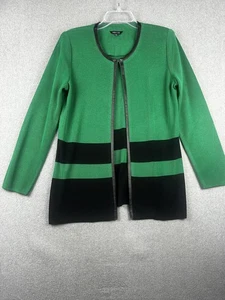Misook Cardigan Sweater Womens Medium Green Black Colorblock Faux Leather Trim