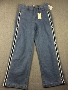 Forever 21 Premium Jeans Womens 28 Blue Denim Baggy Straight Mid Rise Side Snap