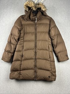 Mountain Hardwear Jacket Women M Brown Full Zip Down Hooded Parka Puffer Outdoor
