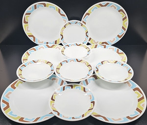12 Pc Corelle Squared Dinner Bread Plates Lot Corning Geometric Serving Dish Set