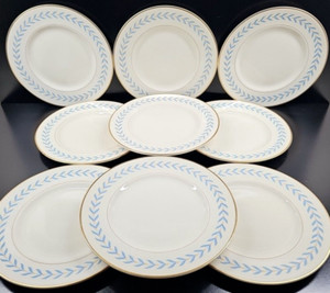 9 Syracuse China Sherwood Large Dinner Plates Set Vintage Old Ivory Blue Laurel
