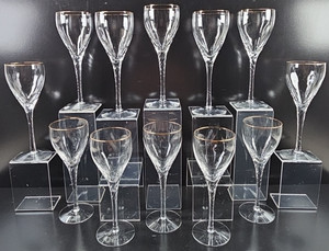 (12) Lenox Encore Gold Wine Glasses Set Elegant Crystal Clear Swirl Stemware Lot