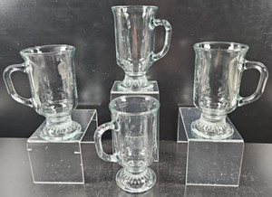 4 Anchor Hocking Irish Coffee Latte Footed Pedestal Clear Mugs Set Drink Cup Lot