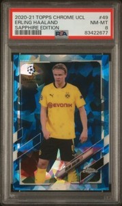 2020-21 Topps Chrome UCL Sapphire Edition Erling Haaland #49 PSA 8 Dortmund