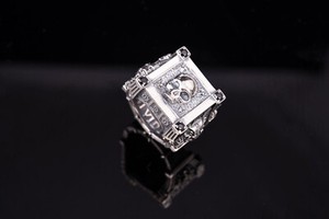 Skull with Shield Ring, Handmade Skeleton Jewelry, Unique Biker's Signet