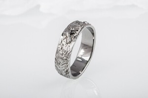 Norse Wolf Ornament Ring Ruthenium Plated Sterling Silver Black Limited Edition
