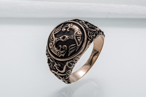 Bronze Sleipnir Ring with Mammen Ornament Unique Norse God of War Jewelry