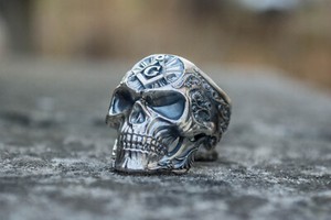 Masonic Symbol Skull Ring Handmade Men Jewelry Unique Freemansory Band