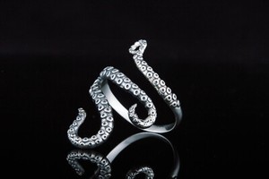 Unique Animal Kraken Ring Handcrafted Pirate Jewelry Open Sea Life Octopus Band