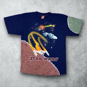 Vintage 90s Star Wars All Over Print Phantom Menace Movie Promo T-Shirt Sz Large