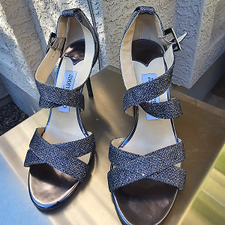 SALE!Jimmy Choo Shimmery Strappy Grey & Metallic High Heeled Sandal - Size 36 EU