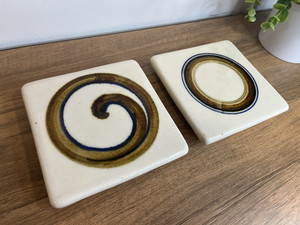 Vintage FRED EVANGEL Pottery Stoneware Trivet Tile Abstract Stamped SET of 2