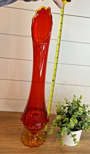 LARGE 22.75inch Swung Vase FENTON Valencia FLAME Amberina Ruby Glass Vintage MCM