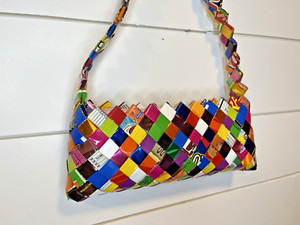 CANDY WRAPPER PURSE Colorful Shoulder Pink Zip Wearable Art Upcycle RETRO
