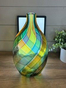 THOMAS KREAGER Art Glass Hand Blown SWIRL Purple Teal Amber Avocado SIGNED