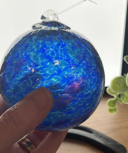 Art Glass ORNAMENT Blue COBALT Purple Sun Catcher Orb Witch Ball