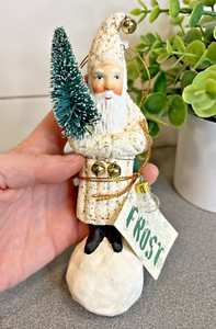 Dept 56 Father Frost Santa Christmas Ornament GOLD GLITTER Bristle Brush Tree