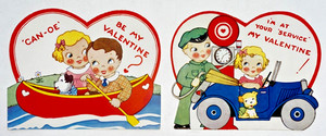 Vintage Matching Children's Valentines - Car & Boat