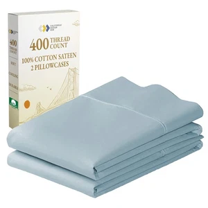 Standard Queen Size Pillowcase Set - 400 Thread Count, 100% Cotton Sateen, Se...