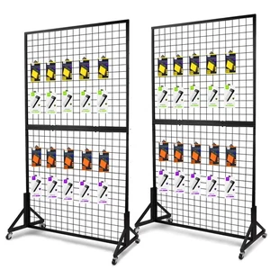 2 Packs 3'X 6' Two Gridwall Panels Display Stand with Sturdy T-Base, Black Wi...