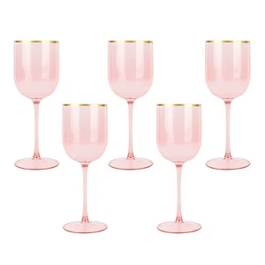 Pink Wine Cup with Gold rim Plastic Wine Glasses Set of 5 Elegant Wine Goblet...