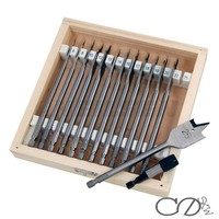 13pc Wood Drill Bit Set Flat Spade Hex Shank 150mm Length 6mm Upto 25mm Case