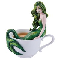Amy Brown Emerald Green Mermaid in Espresso Tea Cup Statue Figurine