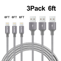 3 Pack 6FT Heavy Duty Lightning Cable Charger for iPhone 7 6 5 Apple Certified