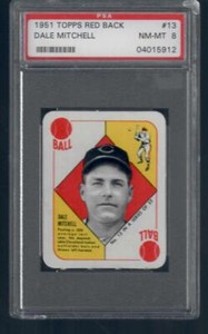 1951 Topps Red Backs - #13 Dale Mitchell - Cleveland Indians - PSA 8 NM - MT