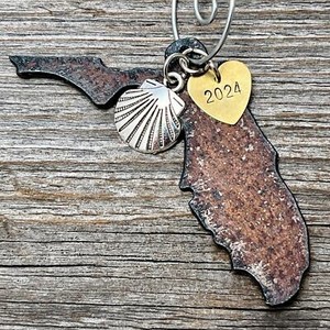 2024 Florida Christmas Ornament with Shell Charm & Brass Heart Tag, SMALL