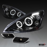 2000-2004 Ford Focus Black Halo LED Projector Headlights+Bumper Signal Lamps