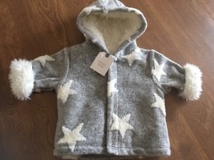 Next Baby, Faux Fur gray Jacket Coat With stars, 0-3 months New!