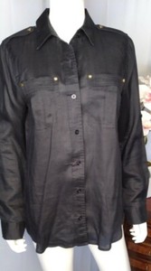 Michael Kors Women's Black Button Down Shirt Gold Trim Size M ID0076