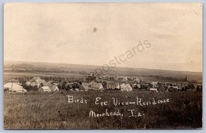 K29/ Moorhead Iowa RPPC Postcard c1910 Birdseye View Homes Church 411