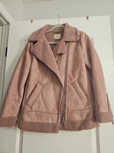 Pink Faux Suede Aviator Jacket Xs
