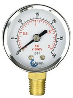 2" Pressure Gauge - Chrome Plated Steel Case, 1/4" NPT, Lower Mnt. 30 PSI