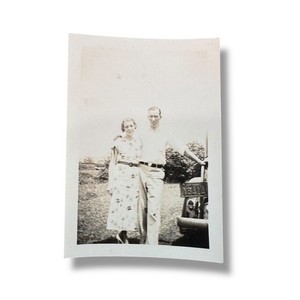 VTG 1930s Couple Standing by Car Snapshot Antique Photo Old Estate Photograph