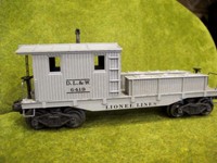 This car serves as the caboose on a string of gray flatcars pulled by a Lionel 675 locomotive. Takes me back to the 1950s.