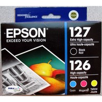 4-PACK Epson GENUINE 127 Black & 126 Color Ink (NO RETAIL BOX) WorkForce WF-3520