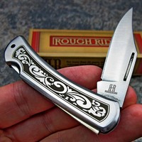 Rough Rider Scroll Work Design Clip Point Blade Folding Lockback Pocket Knife