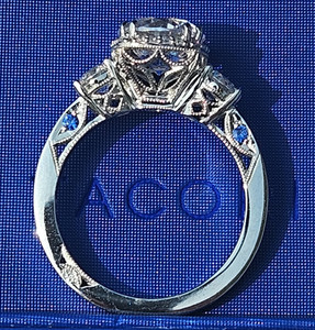 Tacori Platinum Dantela Cushion 3-Stone Engagement Ring 2623RDMD