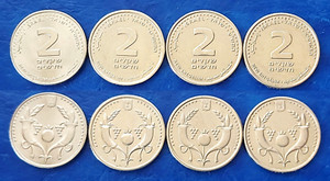 Lot of 4 Israel 2 New Sheqalim Coins 2008, 2009, 2010 & 2011 AU-UNC