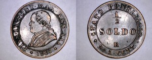 1867-XXIR Italian States Papal States 1/2 Soldo World Coin - Pius IX